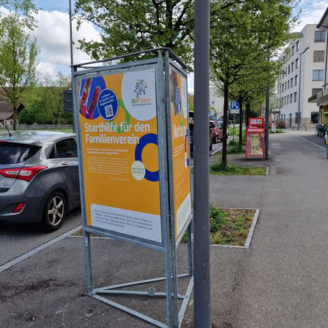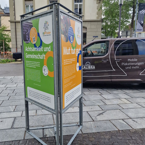 Einzelplakatständer und Dreifachständer mit den möglichen Siegerprojekten