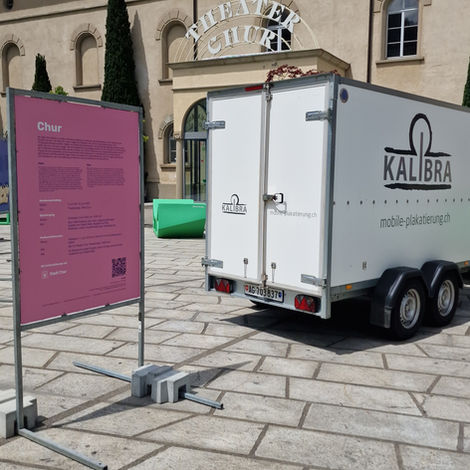 Alubeschichtete Platten, beidseitig bedruckt // pro Standort wird ein Ortsplakat montiert